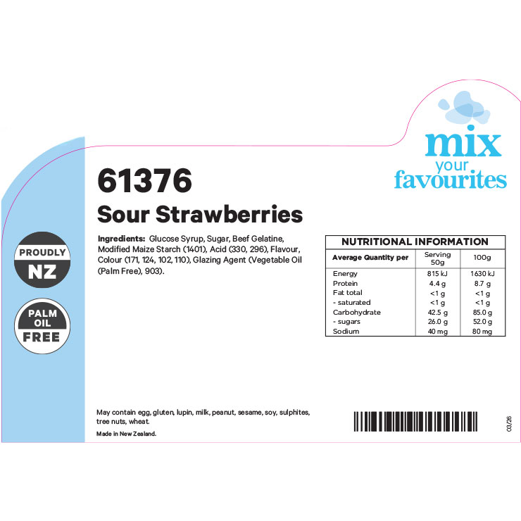 Soft, chewy bites bursting with juicy strawberry flavour with a sour twist. Sweet, fruity and perfectly chewy, they’re a delicious treat that keeps you reaching back for more.