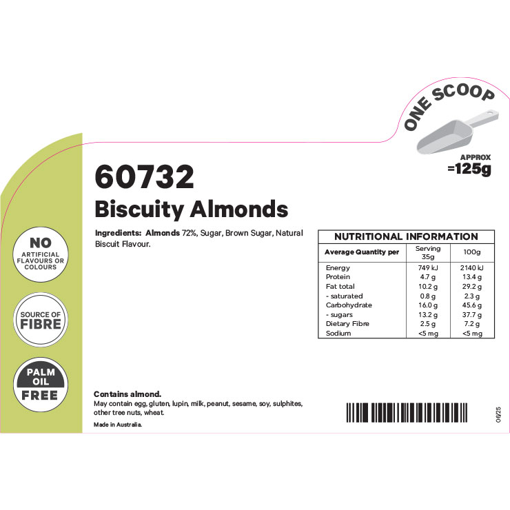 Indulge in our Biscuity Almonds — crunchy almonds coated in a caramelized spice blend inspired by classic cookie flavours. A sweet and satisfying snack you’ll love!