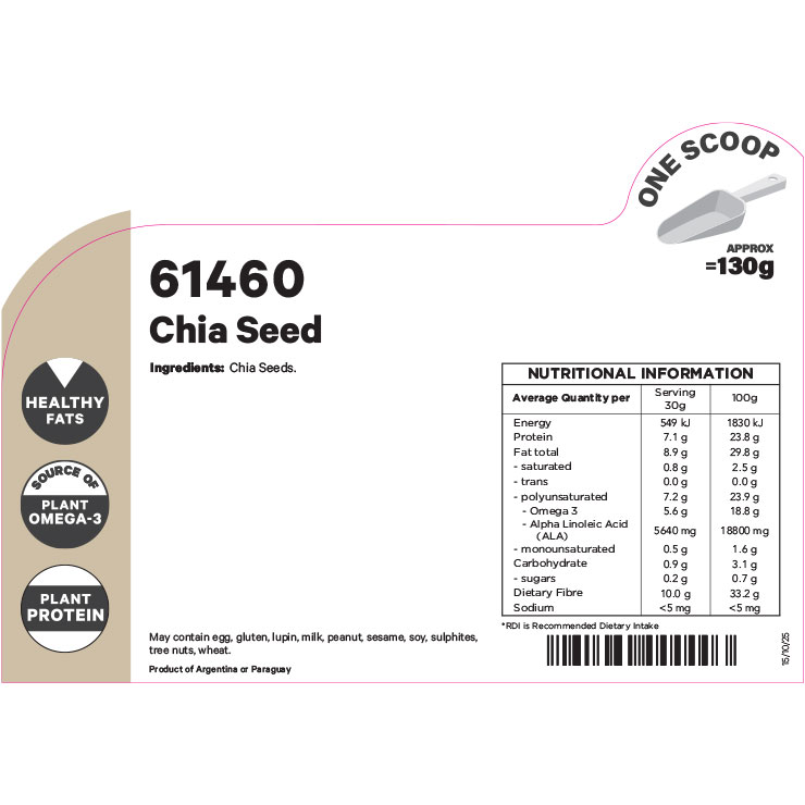 Product may contain: egg, gluten, lupin, milk, peanut, sesame, soy, sulphites, tree nuts and wheat.