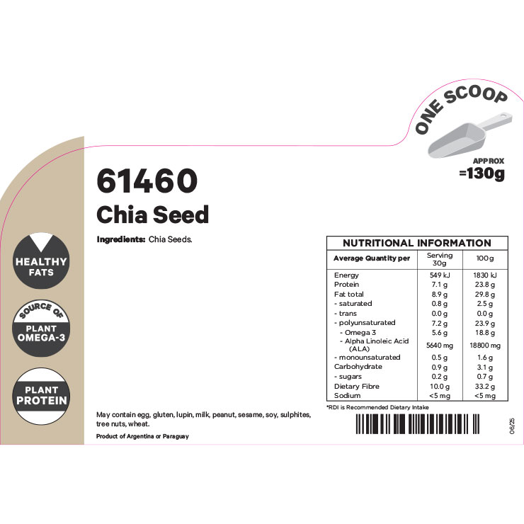 Product may contain: egg, gluten, lupin, milk, peanut, sesame, soy, sulphites, tree nuts and wheat.