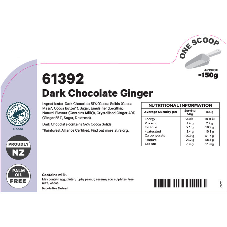 A traditional favourite, soft Fijian ginger coated in 60% dark chocolate