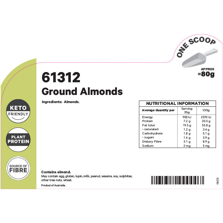 Contains almond. Product may contain: egg, gluten, lupin, milk, peanut, sesame, soy, sulphites, tree nuts and wheat.