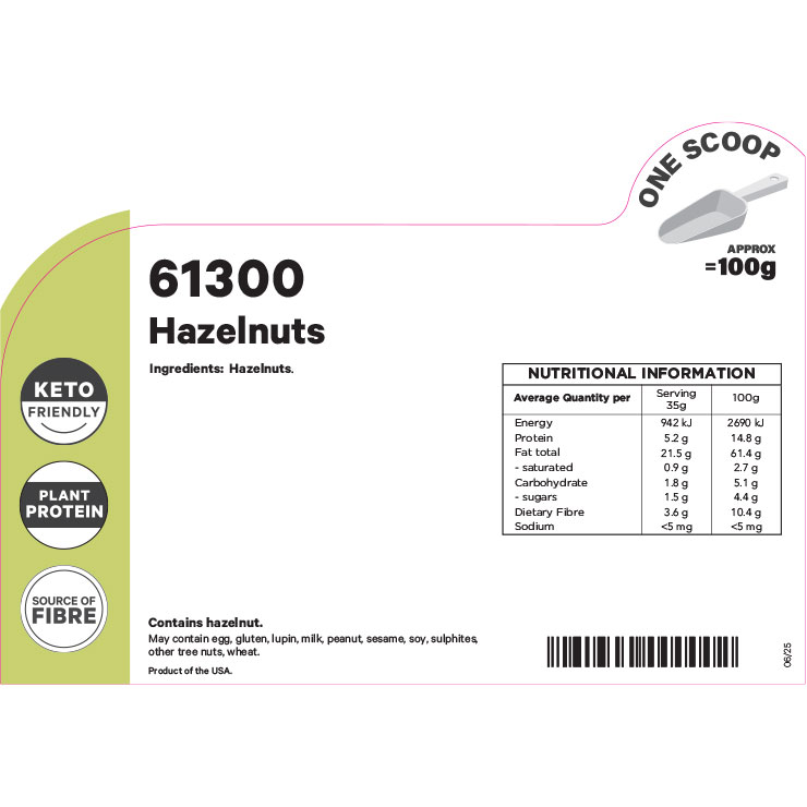 Contains hazelnut. Product may contain: egg, gluten, lupin, milk, peanut, sesame, soy, sulphites, tree nuts and wheat.