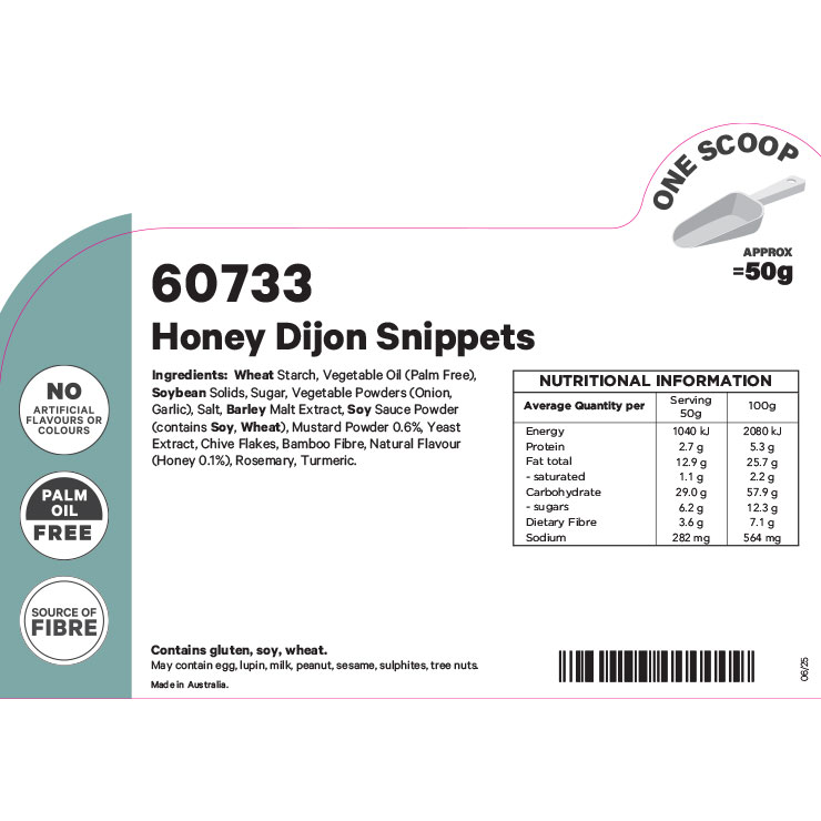 Contains gluten, soy, wheat. Product may contain: egg, gluten, lupin, milk, peanut, sesame, soy, sulphites, tree nuts and wheat.