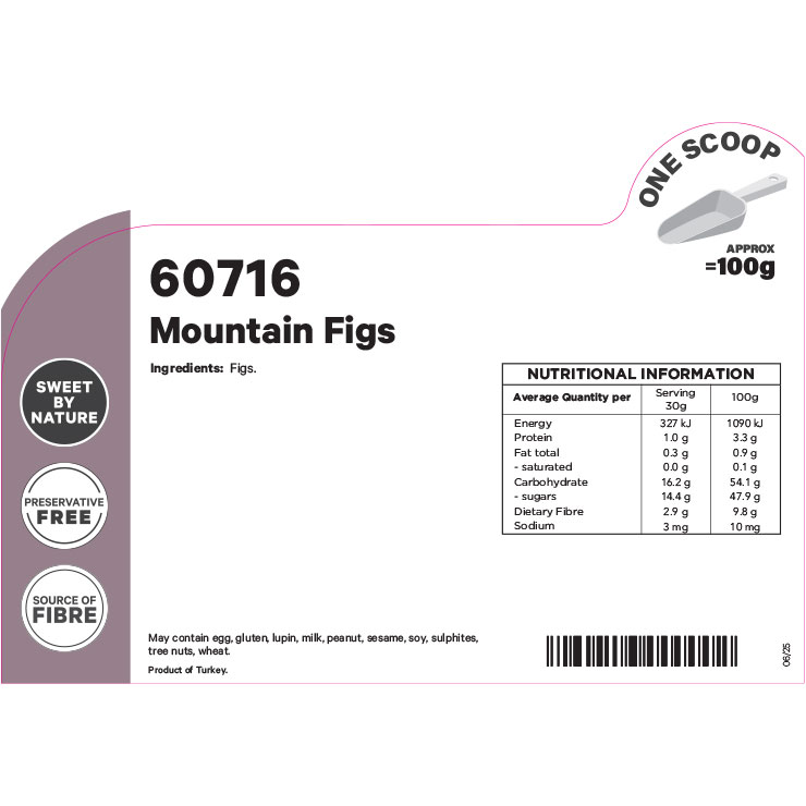 Moist and sweet, naturally dried figs processed to maintain their natural tear drop shape.
