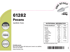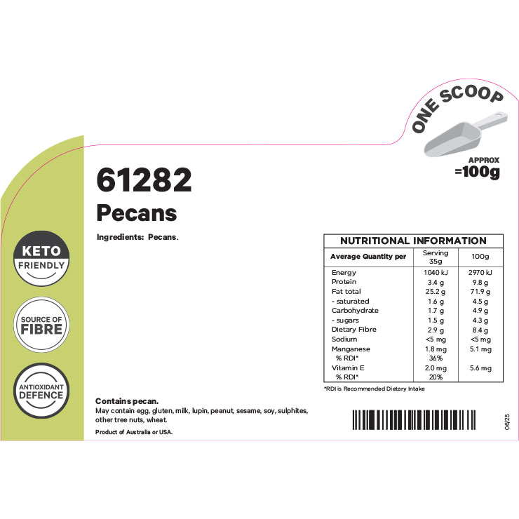 Contains pecan. Product may contain: egg, gluten, lupin, milk, peanut, sesame, soy, sulphites, tree nuts and wheat.