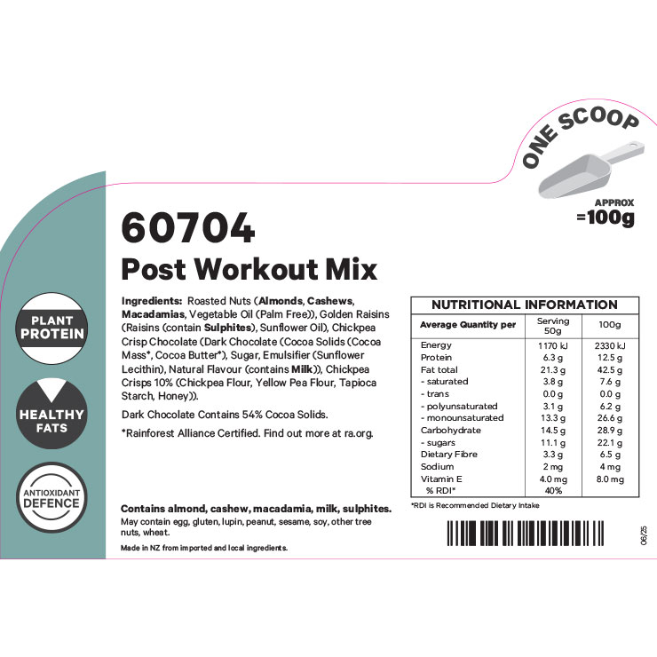 Contains almond, cashew, macadamia, milk, sulphites. Product may contain: egg, gluten, lupin, milk, peanut, sesame, soy, sulphites, tree nuts and wheat.