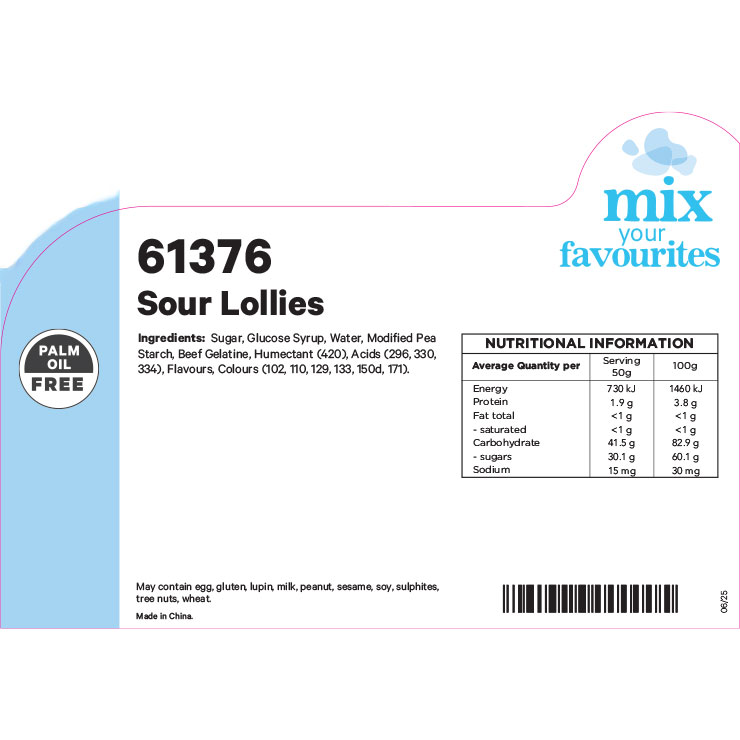 Product may contain: egg, gluten, lupin, milk, peanut, sesame, soy, sulphites, tree nuts and wheat.