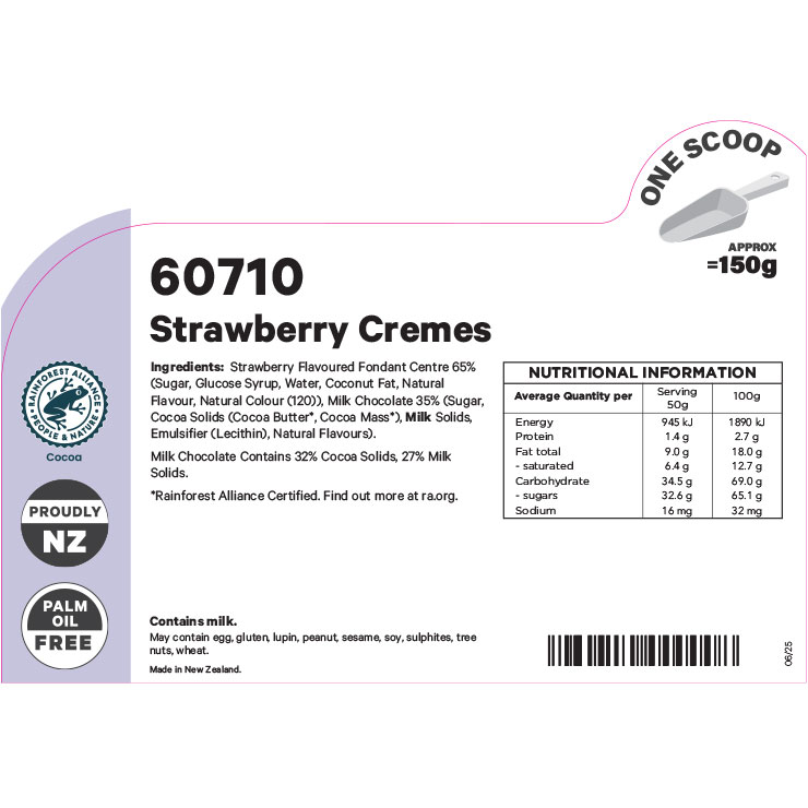 A velvety, creamy strawberry-flavored fondant enrobed in rich 35% milk chocolate.