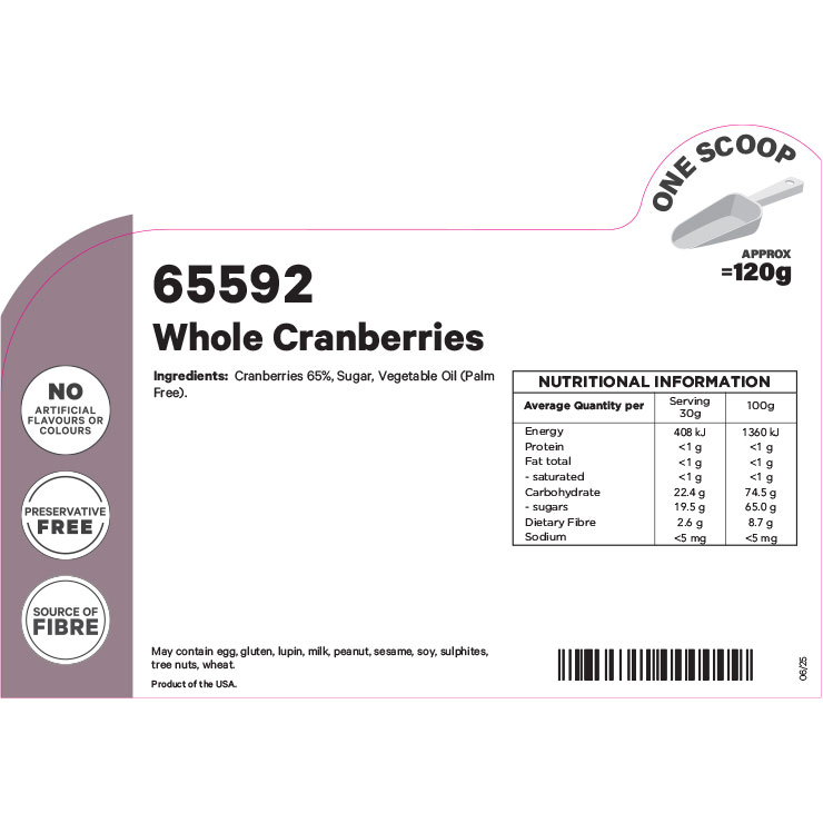 Product may contain: egg, gluten, lupin, milk, peanut, sesame, soy, sulphites, tree nuts and wheat.